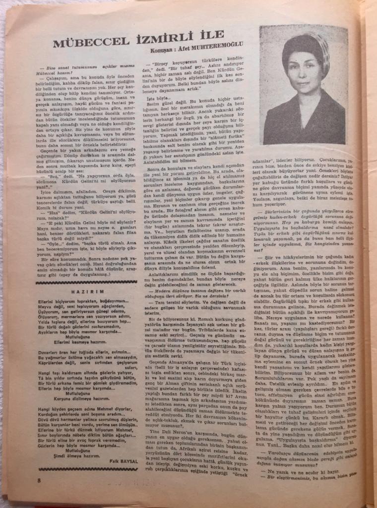 Annem Afet Ilgaz’ın Mübeccel İzmirli ile Yaptığı Röportaj (Varlık Dergisi – 01 Ocak 1968)