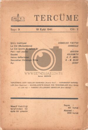 TERCÜME – SAYI 9 – 19 EYLÜL 1941 – CİLT 2