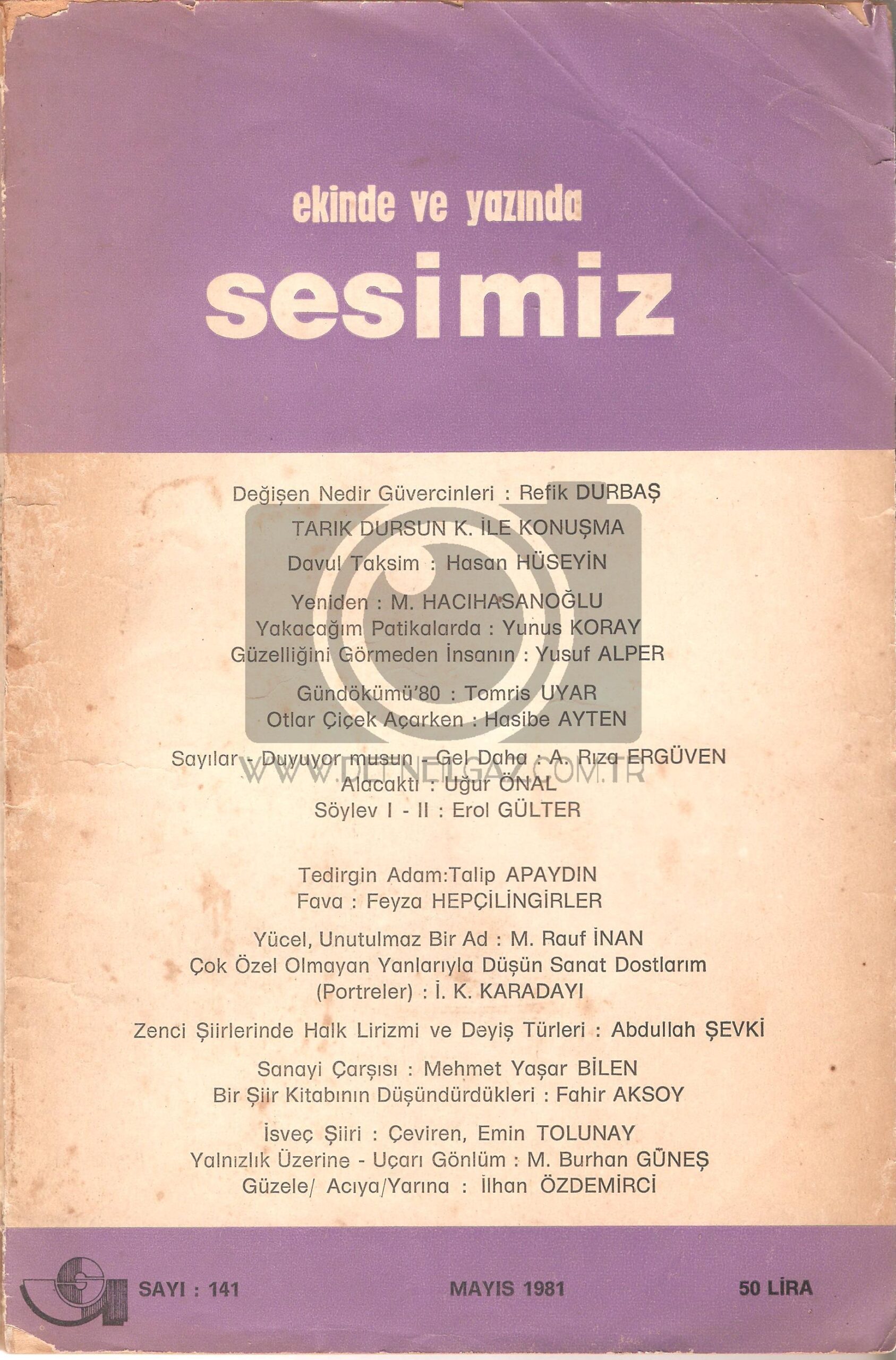 EKİNDE VE YAZINDA SESİMİZ Dergi Sayı 141 Mayıs 1981