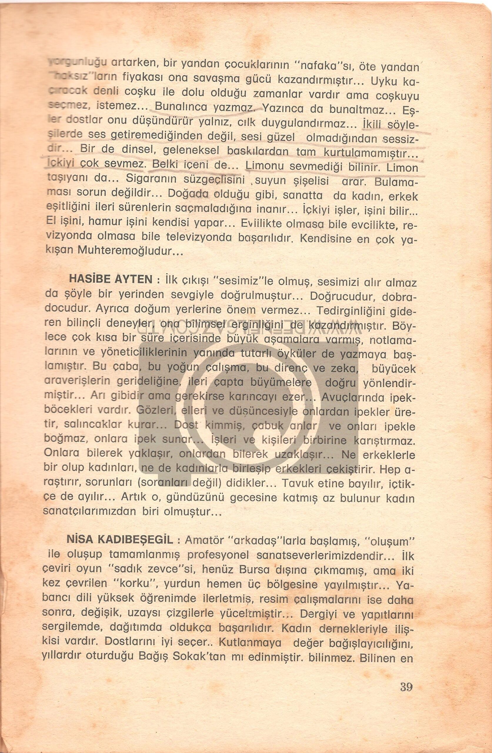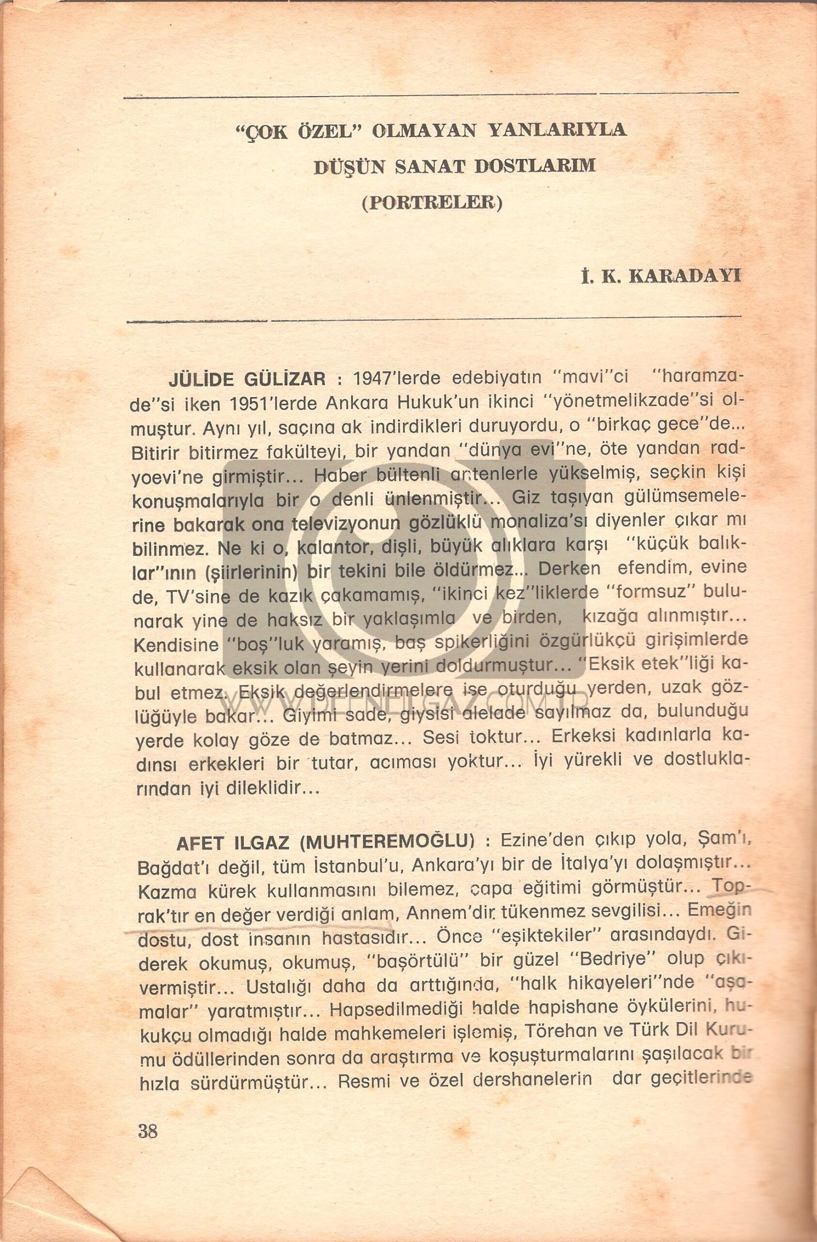 Afet ILGAZ (Muhteremoğlu) ve Mübeccel İZMİRLİ’nin yazıları var.