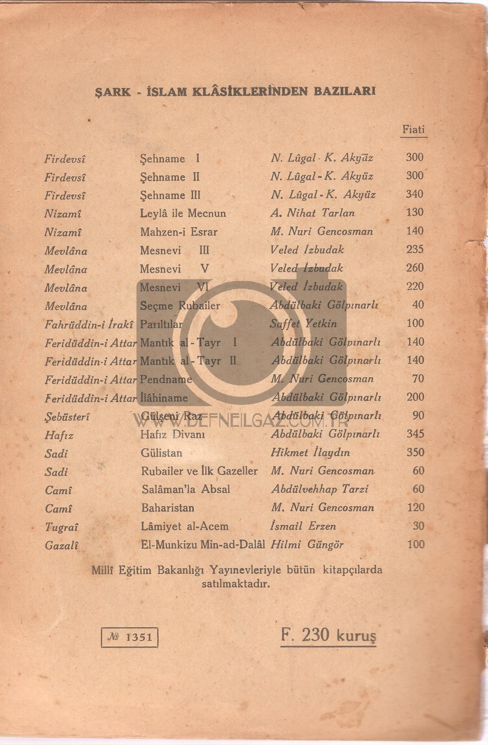 | Yayın Adı | FARSÇA – TÜRKÇE LUGAT GENCİNEİ GÜFTAR FERHANGİ ZİYA XI. FASİKÜL |
