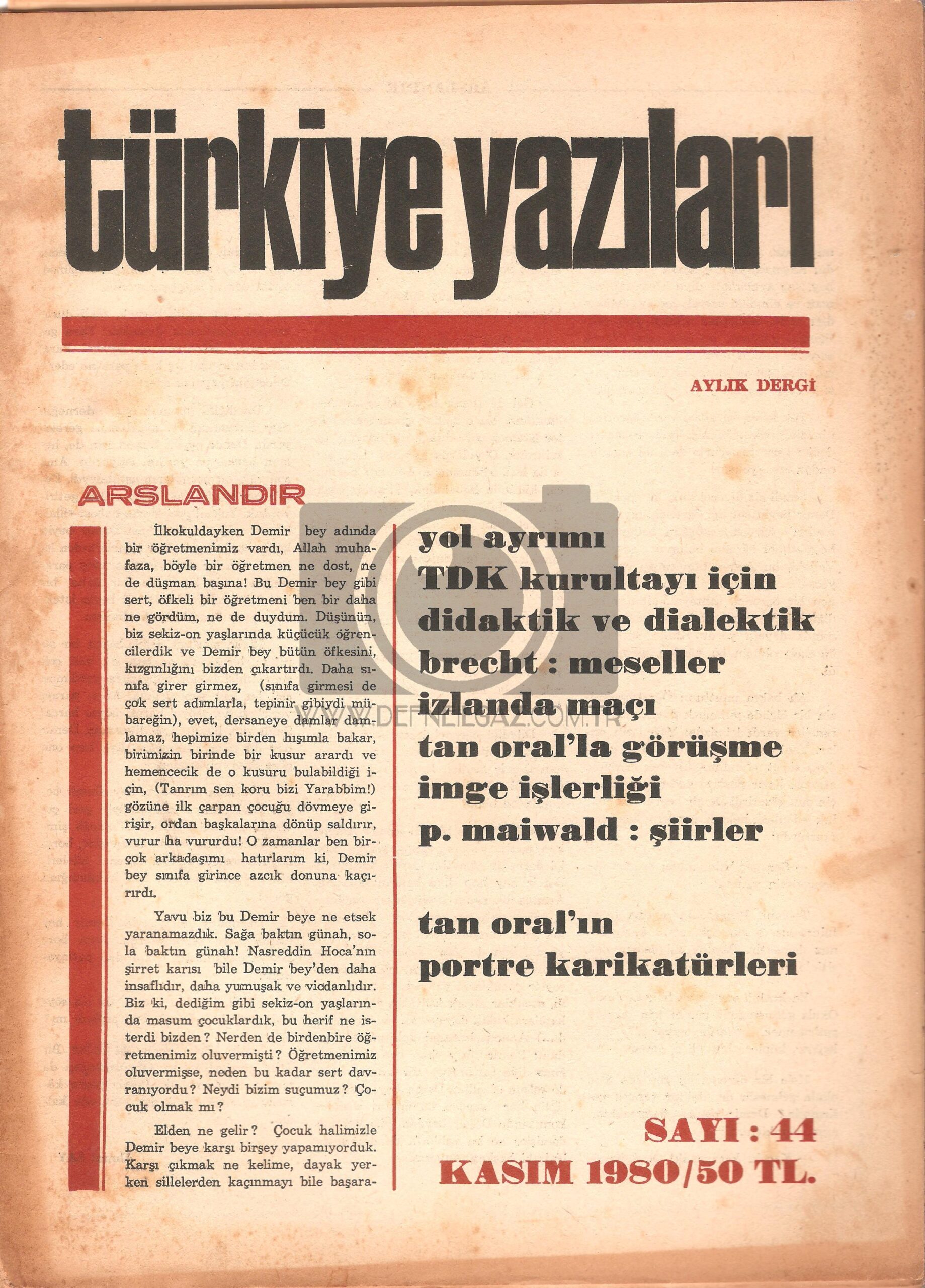 TÜRKİYE YAZILARI KASIM 1980 SAYI 44