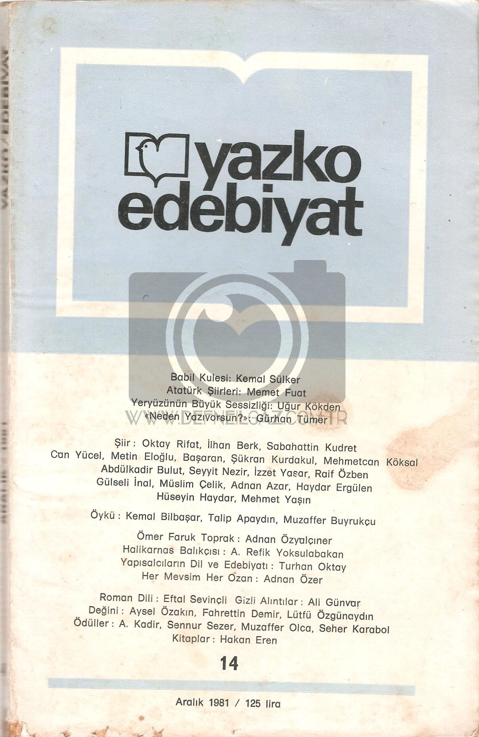 YAZKO EDEBİYAT ARALIK 1981 SAYI 14