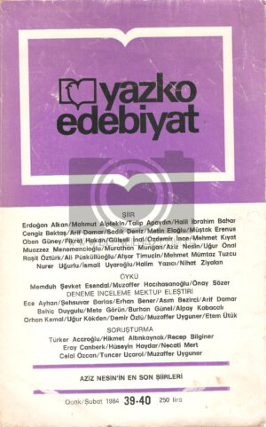 YAZKO EDEBİYAT OCAK-ŞUBAT 1984 SAYI 39-40