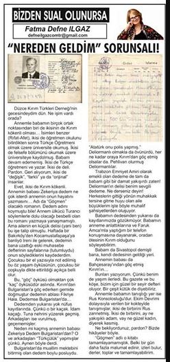 Annemin babası da Bahçesaray’ından göç etmiş Kırım’ın…